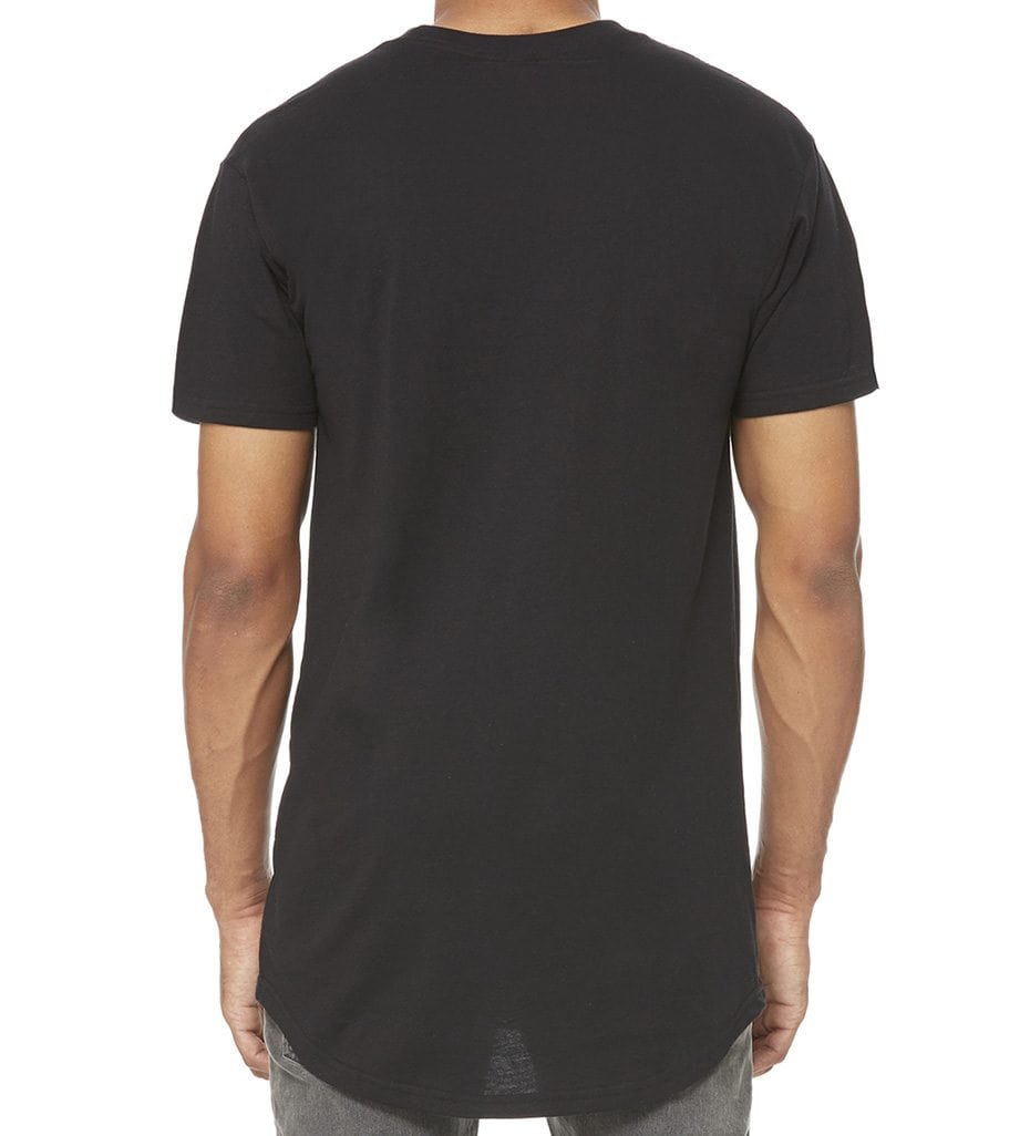 Update your every day style with a clean rounded drop tail elongated back hem in a super soft premium cotton construction and black colorway. The Elliott II from Justified Cultures is a trending statement setter.
